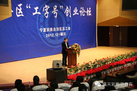 2012年12月5日上午8点30分,盛天彩职业技能培训学校任立超校长应邀参加全区“工字号”创业论坛活动,并作为先进创业者代表在活动中发言。