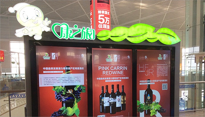 设计“康之旅”产品宣传广告牌,推广红酒、具备地域特色的产品。